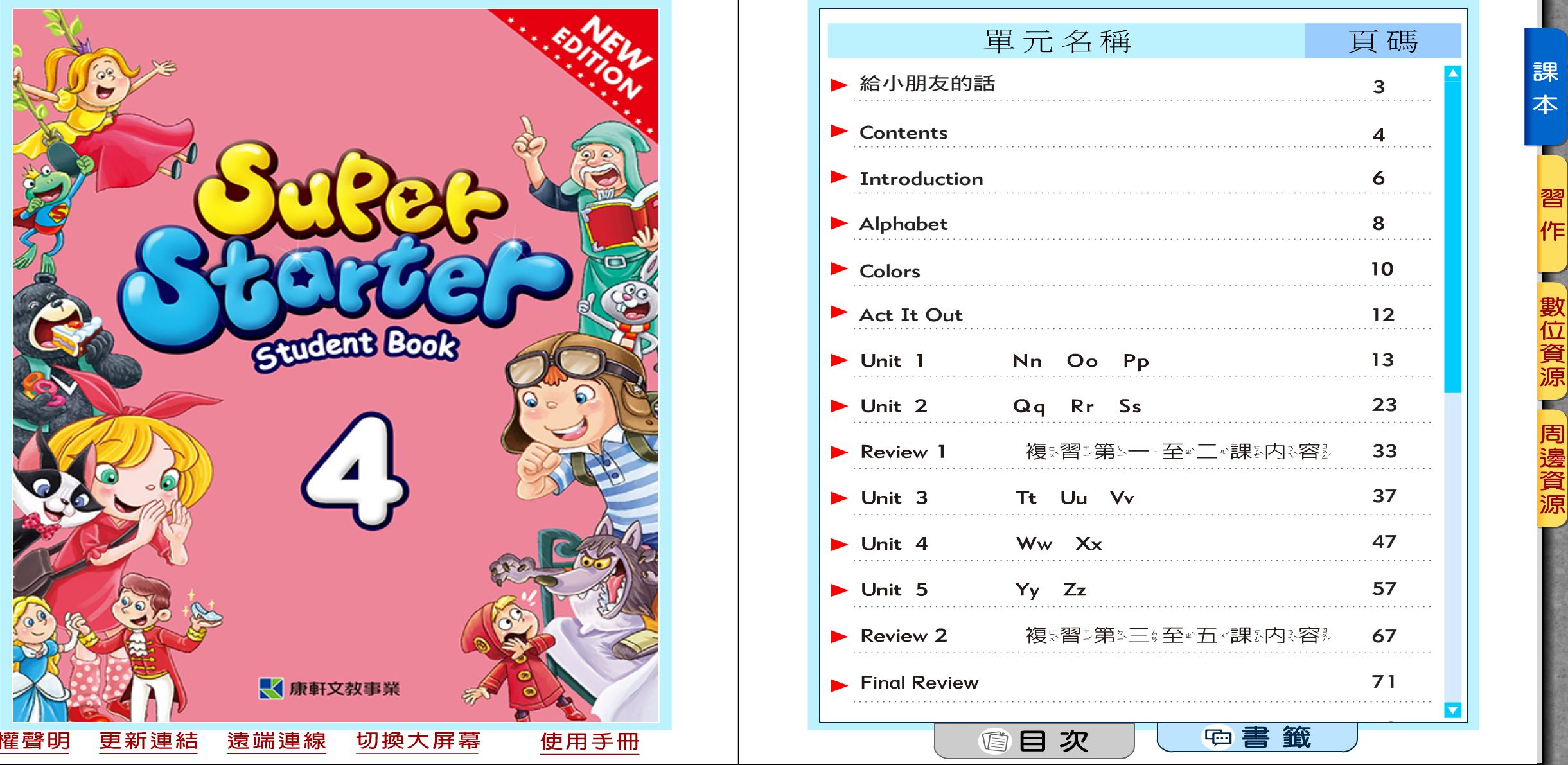 111學年下學期 國小 康軒版 英語電子書 Super Starter 第4冊(含課本、習作含解答) 教學光碟