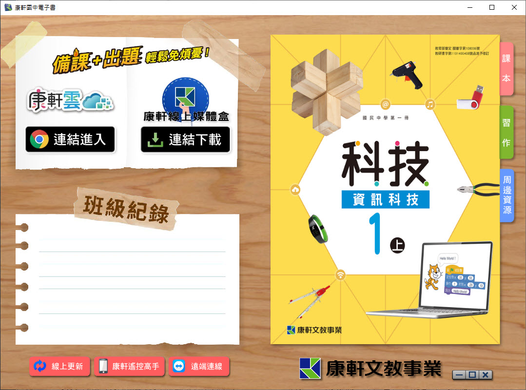 112學年上學期 國中 康軒版 資訊科技電子書 1年級(含課本、習作含解答、教學資源)教學光碟