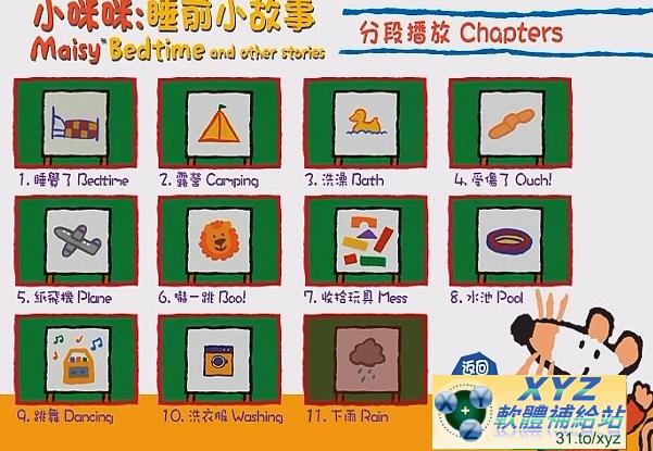 片名:Maisy &Bedtime 0-4歲 小咪咪睡前小故事 01-11集(完) 英語/粵語發音 繁體中文語言字幕(幼兒教學)(適用任何家用DVD播放機超清晰畫面超長超值享受)(DVD9版)