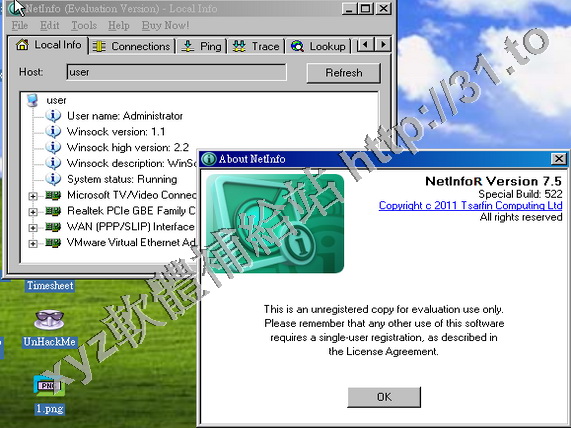 • Tsarfin NetInfo v6.2.715 英文正式版(獲得以IP相接的各種網路資訊軟體)