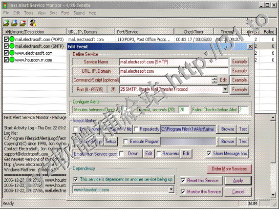 Internet 服務,當這些服務掛掉再重啟時,First Alert Service Monitor 能通過發送