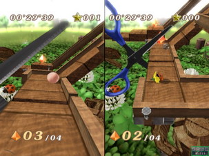 除自己進行遊戲之外,也可以與另一名玩家進行對戰,比較誰有辦法先一步滾到終點。